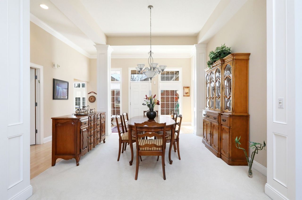 Experience retirement living at its finest in this beautifully designed ranch villa located in The Woodlands. Offering over 2,700 square feet of finished living space, this home features 3 bedrooms, 3.5 bathrooms, and a dedicated home office. The inviting main level includes a spacious family room, formal dining area, and an eat-in kitchen showcasing stunning maple cabinetry and hardwood floors throughout. Convenience meets comfort with a first-floor laundry room and a thoughtfully finished lower level complete with ample storage. The oversized 3-car garage includes a third bay that is both heated and cooled?perfect for hobbies or additional workspace. Step outside to a covered patio overlooking peaceful trees and green space, providing a private and serene setting. Ideally situated next to the community clubhouse, this villa offers easy access to exceptional amenities included in the HOA?private meeting rooms, fitness center, hair salon, social bar, banquet space, billiards room, and more. Don't miss this rare opportunity to enjoy low-maintenance living in one of the area's most desirable communities. Schedule your private showing today.
