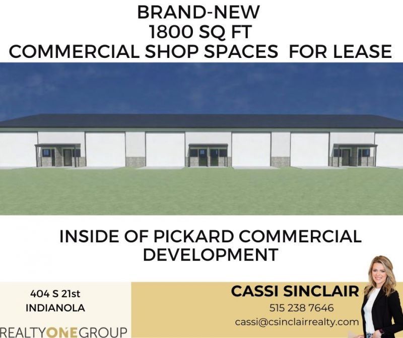 Now available for lease?brand new 2026 construction in Indianola's newest commercial development, ideally located along high-traffic Highway 92. Flexible commercial spaces ranging from 1,800 to 10,800 square feet offer the perfect setup for a variety of business uses. Each unit includes a private bathroom, climate-controlled environment, and a 14' wide by 16' tall overhead garage door?ideal for warehouse, shop, or service-based operations. Excellent visibility, easy access, and the opportunity to secure space in a rapidly growing commercial corridor.