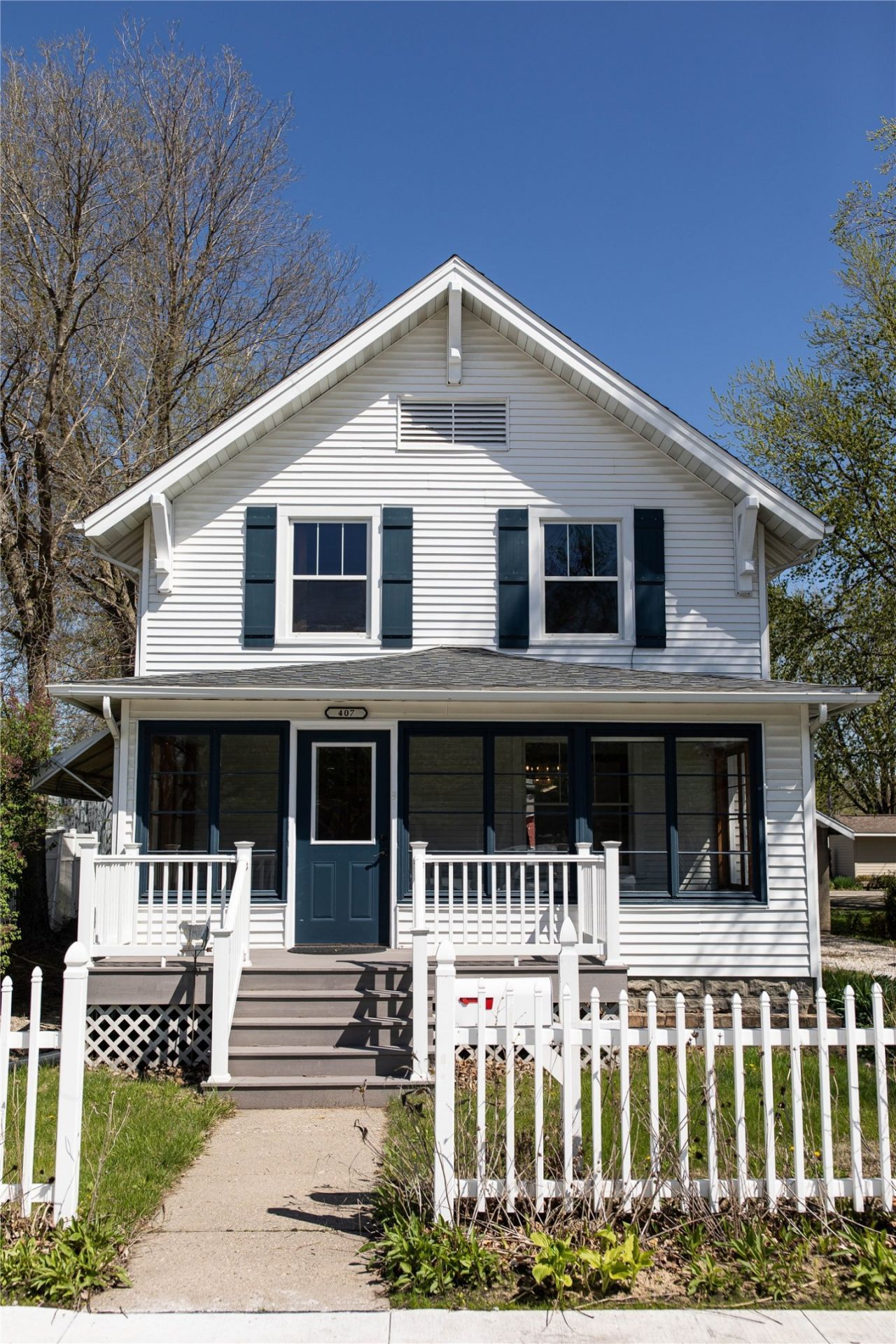 Charming historic home nestled in the heart of Story City's vibrant downtown. This delightful 3-bedroom, 3-bathroom residence boasts a welcoming white picket fence and an inviting enclosed front porch. Inside you will discover a wealth of preserved character, including original woodwork and beautifully refinished hardwood floors. The expansive living room flows seamlessly into a stunning, newly updated kitchen and dining area - a true highlight of this home. Enjoy modern comfort with updated electrical and plumbing systems, as well as a completely renovated full bathroom. The generous-sized bedrooms offer ample space and natural light. Outside, an expansive backyard provides a perfect setting for outdoor living and entertaining, complete with a private back deck and privacy fence. Experience the convenience of downtown living within close proximity to the library, shopping, post office, and all the attractions Story City has to offer. Enjoy great views of the historic downtown right from your front door.