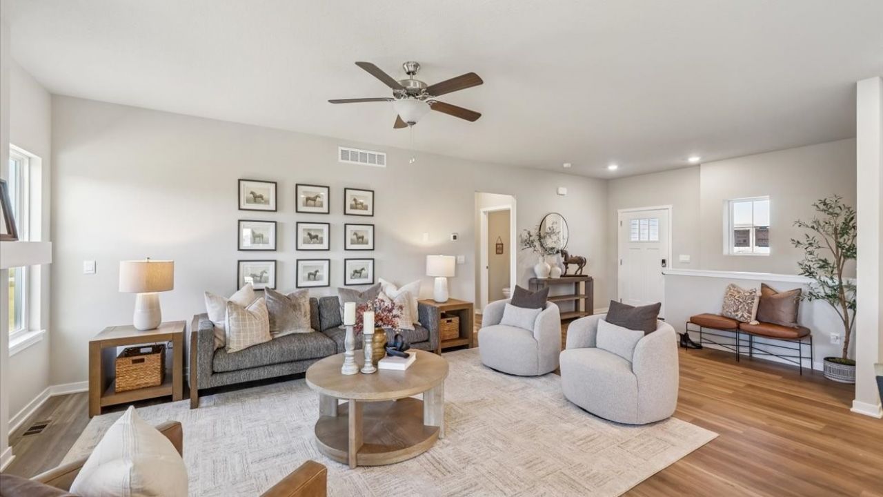 Welcome to the Reagan in Mallard Prairie - featuring 4 bedrooms, 3.5 bathrooms, and 2,452 sq. ft. of open living space, including a finished basement. The main level boasts 9' ceilings, a spacious great room with an electric fireplace, and a gourmet kitchen with white cabinetry, subway tile backsplash, stainless steel appliances, and a large island. The primary suite offers a luxurious en-suite bath with dual sinks, ceramic tile walk-in shower, and a bright walk-in closet. Two secondary bedrooms share a full bath with dual vanities and a private water closet. Downstairs, enjoy a finished basement with a rec room, 4th bedroom, and full bath. A 3-car garage and smart home features complete the package. Visit today for a personal tour! Ask about builder incentives with preferred lender. Photos similar to.