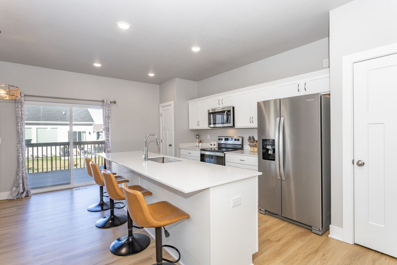 This like-new, meticulously maintained home offers an open-concept layout with 4 bedrooms, 3.5 bathrooms, and over 2,200 finished square feet, including a beautifully finished basement. The kitchen showcases a stunning 10-foot quartz island, stainless steel appliances, and dual pantries, offering both style and functionality. The living room is filled with natural light from oversized windows and features a cozy electric fireplace. A turnback staircase leads to a versatile loft area - perfect for a home office, playroom, or additional living space. Three bedrooms include walk-in closets, providing generous storage throughout. The finished basement adds even more living space with an entertainment room, full bathroom, and an additional bedroom - ideal for guests or extended family. Step outside to enjoy the open deck, perfect for relaxing or entertaining! Additional highlights include a smart home automation system, a transferable home warranty, and a prime location with quick access to I-35. Conveniently located just minutes from everyday essentials, including Costco, Hy-Vee, and Walmart.