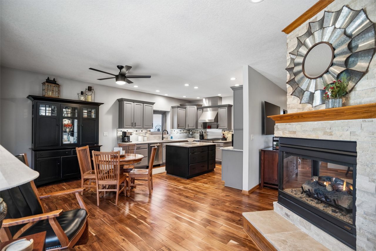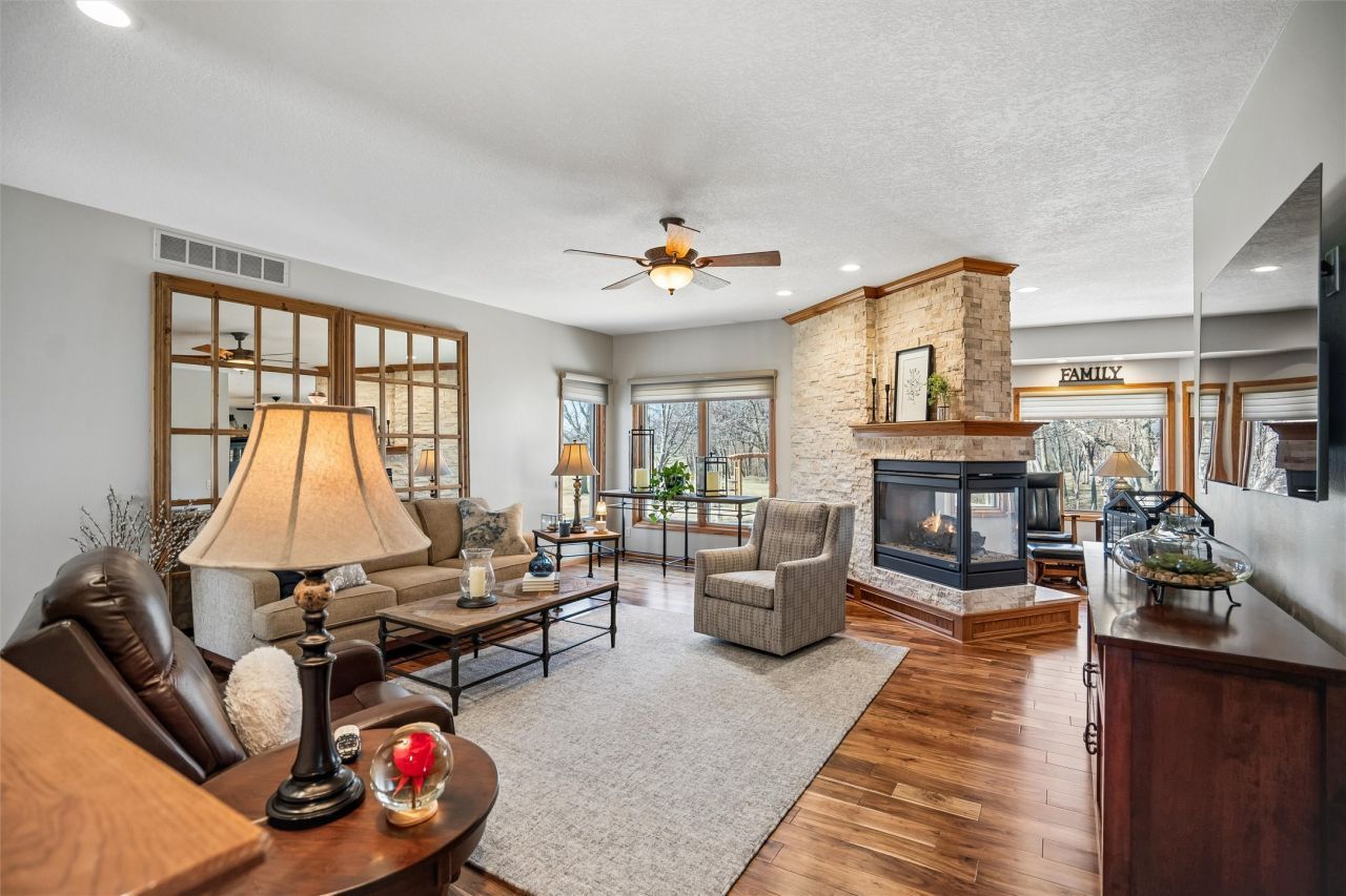 Discover the perfect blend of comfort, style, and space with this beautifully updated 3.29 acre acreage! This inviting ranch home features a 3 car garage and a 30x40 heated and air conditioned shop, ideal for hobbies, projects, or storage. Inside, the home has been thoughtfully updated throughout with quality finishes. The kitchen stands out with a Wolf stove and vent, an additional wall oven, and all appliances included, perfect for everyday living and entertaining. Enjoy year round comfort with geothermal heating and cooling plus a whole house generator for added peace of mind. The main level offers a spacious primary bedroom and a fully remodeled bathroom with a freestanding soaking tub. A versatile front room can serve as an office, dining, or flex space, and all main level flooring has been updated. The 3 season room is a relaxing bonus space filled with natural light. The finished basement includes two bedrooms, a large family room, extra flex space, and ample storage. Outside features beautiful landscaping with two brick patios, a brick path to the shop, three custom wooden plant structures, a composite deck, and an asphalt driveway. Enjoy peaceful views, mature trees, open green space, and room to entertain, garden, or simply relax in your own private retreat. This property truly offers the best of comfort and country???????????????????????????????? living!