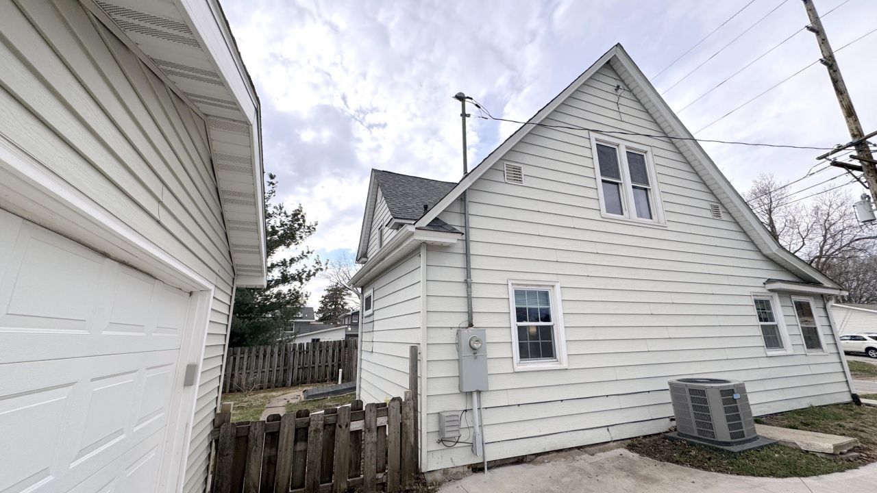 Charming and full of character, this 1.5-story home in Nevada, IA offers 4 bedrooms, 1 bathroom, and an oversized 1-car detached garage. Step inside through the inviting enclosed front porch to the spacious living room which features beautiful hardwood floors and flows seamlessly into the dining area, creating a warm and functional layout for everyday living and entertaining. The updated full bathroom boasts tile flooring and a stylish tiled shower surround. The large kitchen is a standout with new luxury vinyl flooring, tile backsplash, center island, and all appliances included--ready for your next meal or gathering. A generously sized main-floor bedroom adds convenience and flexibility.Upstairs, you'll find three large bedrooms with tall ceilings, hardwood flooring, and ceiling fans, providing comfort and charm throughout. The unfinished basement offers ample storage and includes a washer and dryer. Updated AC in 2022 and water heater in 2020. Outside, enjoy a fully fenced backyard with mature trees, a spacious concrete patio on the west side, and a second patio on the south with a cozy firepit and pergola--ideal for entertaining or quiet nights at home. The oversized 1.5-car detached garage provides additional storage and workspace. A 1-year home warranty through AHS is included for added peace of mind. This home blends classic features with thoughtful updates--ready for you to move in and enjoy!