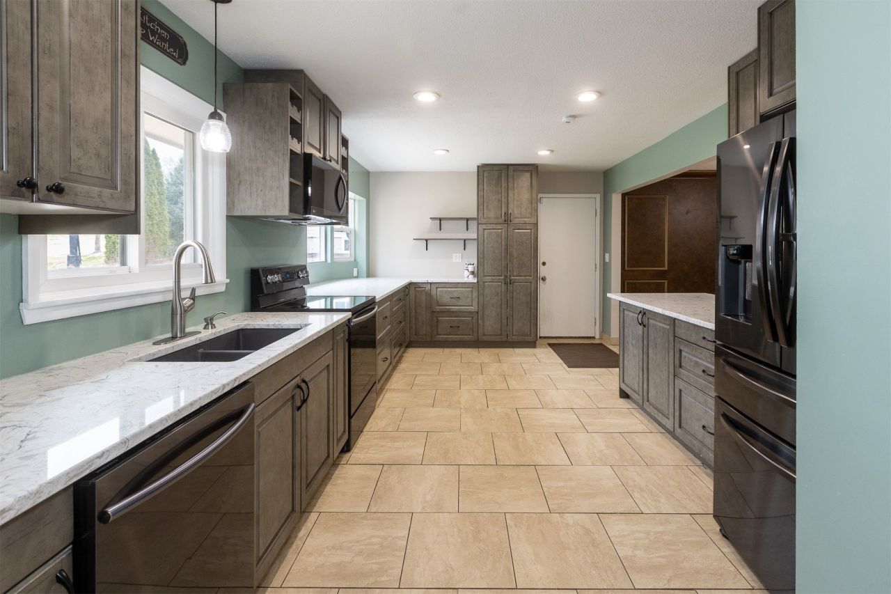Welcome to this spacious and versatile 4-level split offering room for everyone! Out front you're welcomed by an extra-large drive and front patio. The main level boasts an updated kitchen with ample counter space, newer appliances (all included), a formal dining room, and a bright, open living area that flows into a cozy sunroom overlooking the backyard. The upper level features a private primary suite with en-suite bath, plus two additional bedrooms and a large shared full bath. The lower level offers a warm and inviting family room with fireplace, walkout access to a partially covered patio, an additional large bedroom, and another full bath perfect for guests or multi-generational living. The basement level adds even more flexibility with a large flex room or bedroom, plus laundry and storage. Outside, enjoy a generous backyard complete with two storage sheds and an impressive treehouse. A 2-car attached garage completes this fantastic home!